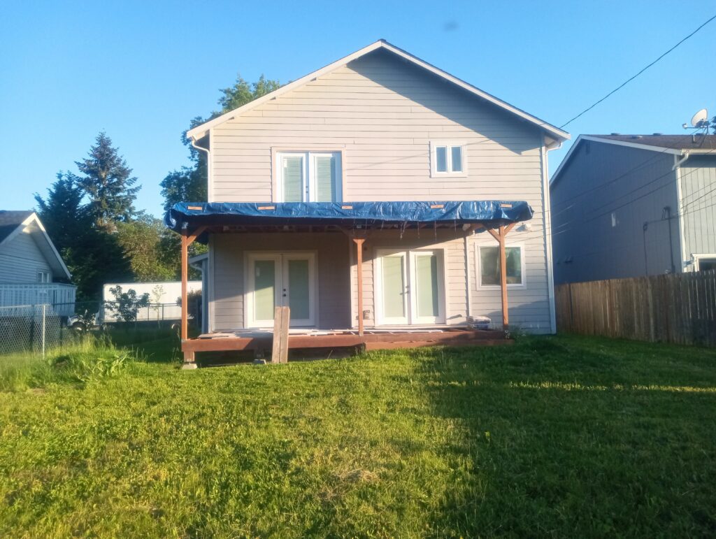 A complete whole-house remodel featuring a custom covered porch, designer hexagon tile flooring, and a modern white kitchen, transforming this home into a polished sanctuary.